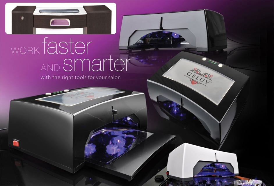 Gorgeous Nails in a Flash! Add built-in UV Gel and LED Lights to your manicure table making it a more convenient workstation. No need to lead your client around the salon....Perform nail prep, manicure and curing all in one place.