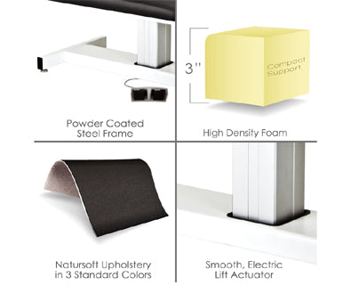 Our Apex Lift table includes all the features of our stationary Apex, with the convenience and strength of an electric lift. Its luxurious surface and tilting headpiece are mounted on a sturdy lift base with a quiet, powerful motor that will serve you dependably for years.