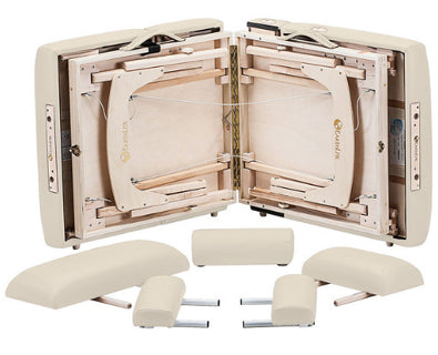 Meridian SpasIn a hotel room, on the deck, by the pool, in the home -- perform spa treatments wherever you want with the versatile and economical Calistoga™ Portable Salon Table. Crafted from solid hard Maple, the Calistoga™ lets you offer facials, massage, and other spa treatments “on the go”. Folds away for portability and easy storage. The luxurious design features our Pro-Plush Deluxe™ cushioning system wrapped in the buttery, yet durable Natursoft™ upholstery. 27" wide.