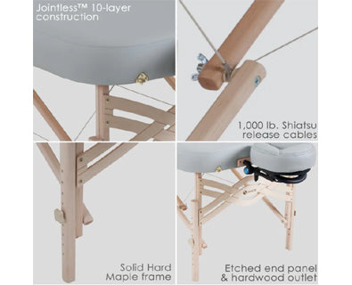 For three decades, the Spirit™ portable massage table has been Earthlite’s flagship model — the best we can produce. More beautiful, stronger, more functional, the Spirit has been brought to new levels of performance by our designers. We have combined the finest workmanship and materials with an innovative new hoop construction to bring you the ultimate in strength, stability, and style. Take your healing practice to new heights with the Spirit massage table.