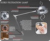 Meridian SpasThe Euro Filtration Lamp removes, harmful finely-ground nail dust from the air. Comes in a sleek design metallic silver finish with contemporary hardware. This attractive unit is easy to assemble, operate and install. The 12 Volt energy efficient lamp uses less electricity than conventional lamps. Silent yet powerful, efficient and economical, the Euro Filtration lamp makes your place brighter, cleaner and greener!