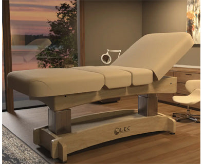 The Aspen features a solid maple frame, smooth and quiet dual column electric lift actuators and electric salon top. An amazing Softstart/Softstop™ feature gives a subtle, almost imperceptible, elevator type feel as the table gently whisks clients up and down. This table has been designed from the ground up for ultra-reliability and minimal maintenance requirements in the most intensive spa environments. Electronic, programmable Salon Top is perfect for facials, massage and many other spa treatments.