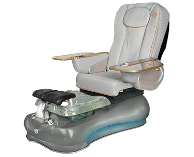 La Fleur 3 9690 pedicure chair is an upscale pedi chair with 2 fold down manicure trays, built-in touch pad remote, Shiatsu roller massage, optional LED base lighting, and a large selection of colors to create your own design. The all new adjustable footrest is convenient for both the customer and technician for providing a comfortable pedicure service.
