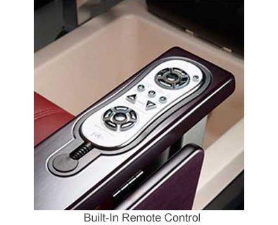 Meridian SpasThe Lenox LX and Episode chair is available in four different color options. The remote control is built-in to the armrest for the customers convenience. This chair is designed to deliver an immersive full body shiatsu massage. The side trays and cup holders can be folded down when not in use and adjustable armrest lifts up for clients access to the pedicure spa.