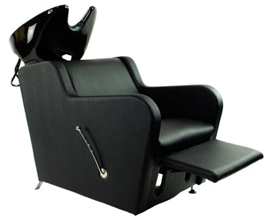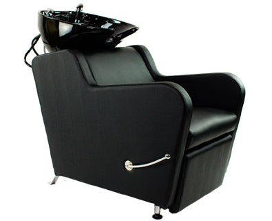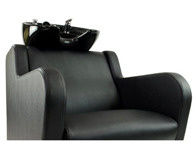 The Stanley is a beautiful blend of quality, style and functionality with a white porcelain bowl and stylish black vinyl upholstery. The modern design is offset by elegantly rounded armrests. The built in headrest is foam lined, so your clients can completely relax. To add to the client comfort, this backwash unit puts your client at the perfect angle for their head to lay comfortably in the bowl while providing extra lumbar support for their back. The Stanley backwash unit features an wide tilt angle porcelain bowl that makes sure your client head is in the perfect place and no spills occur. The single handle fixture comes with a built-in vacuum breaker.