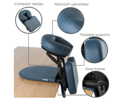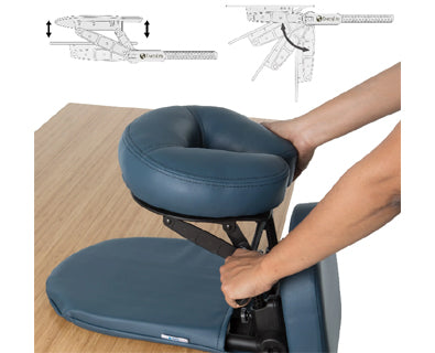 Our TravelMate - is desktop, go-everywhere massage support. A superior product for the on-the-go massage therapist. Perfect for eye surgery recovery. Our TravelMate brings your therapy to any home or office. Even works with clients in wheelchairs. Sets up solidly on any desk or table top - adjusts easily, providing balanced support to your client's head and chest. TravelMate has attained a reputation for premier quality, performance and comfort.